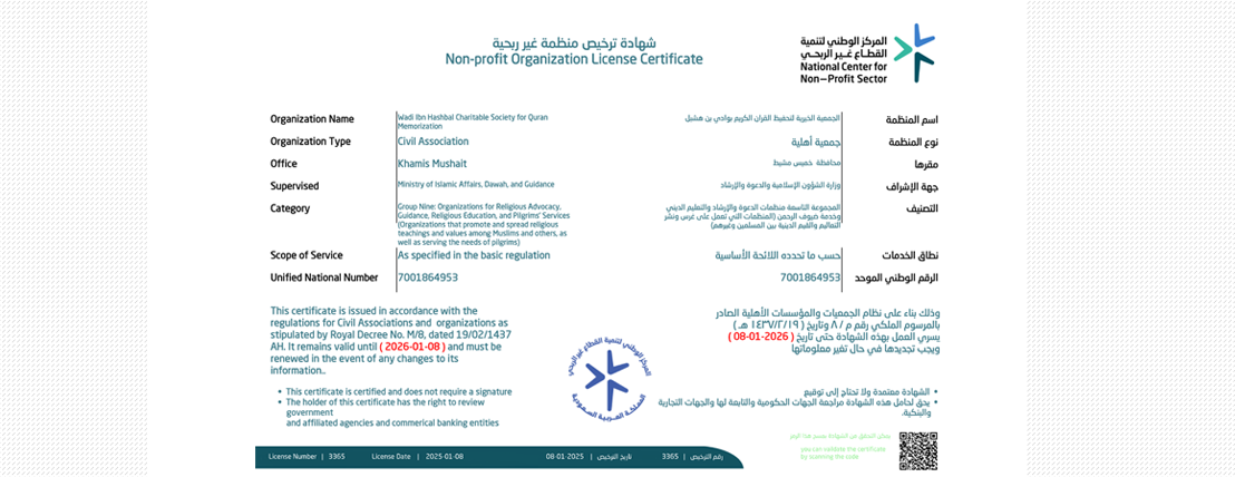 جديد الأخبار انعقاد الجمعية العمومية العادية رقم 20 المتضمن لانتخابات مجلس الإدارة في دورته الجديدة. 23/12/1446 اختتام مشروع كفالة الحلقات والدور النسائية وتعليم الجاليات القران الكريم 16/12/1446 إعلان أسماء المرشيحن لدورة مجلس الإدارة في دورته الخامسة 08/12/1446 إقامة لقاء تعريفي لأعضاء الجمعية والموظفين 06/02/1445 انعقاد اجتماع الجمعية العمومية الثاني ٢٠٢٢م 20/04/1444 جميع الأخبار منجزات الحلقات خلال العام الدراسي لعام 1446هـ المقرات التعليمية حلقة طالب وطالبة أوجه الحفظ اوجه المراجعة عدد المعلمين والمعلمات عدد المشرفين والمشرفات اختبارات المستويات الزيارات الإشرافية